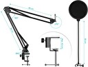 Teleskopické rameno s pružinovým mechanismem a třemi klouby pro snadné nastavení výšky a úhlu mikrofonu, který je bezrezonančně uchycen v držáku. Průměr POP filtru 15 cm zajištuje dokonalou ochranu a prodlužuje životnost mikrofonu.