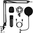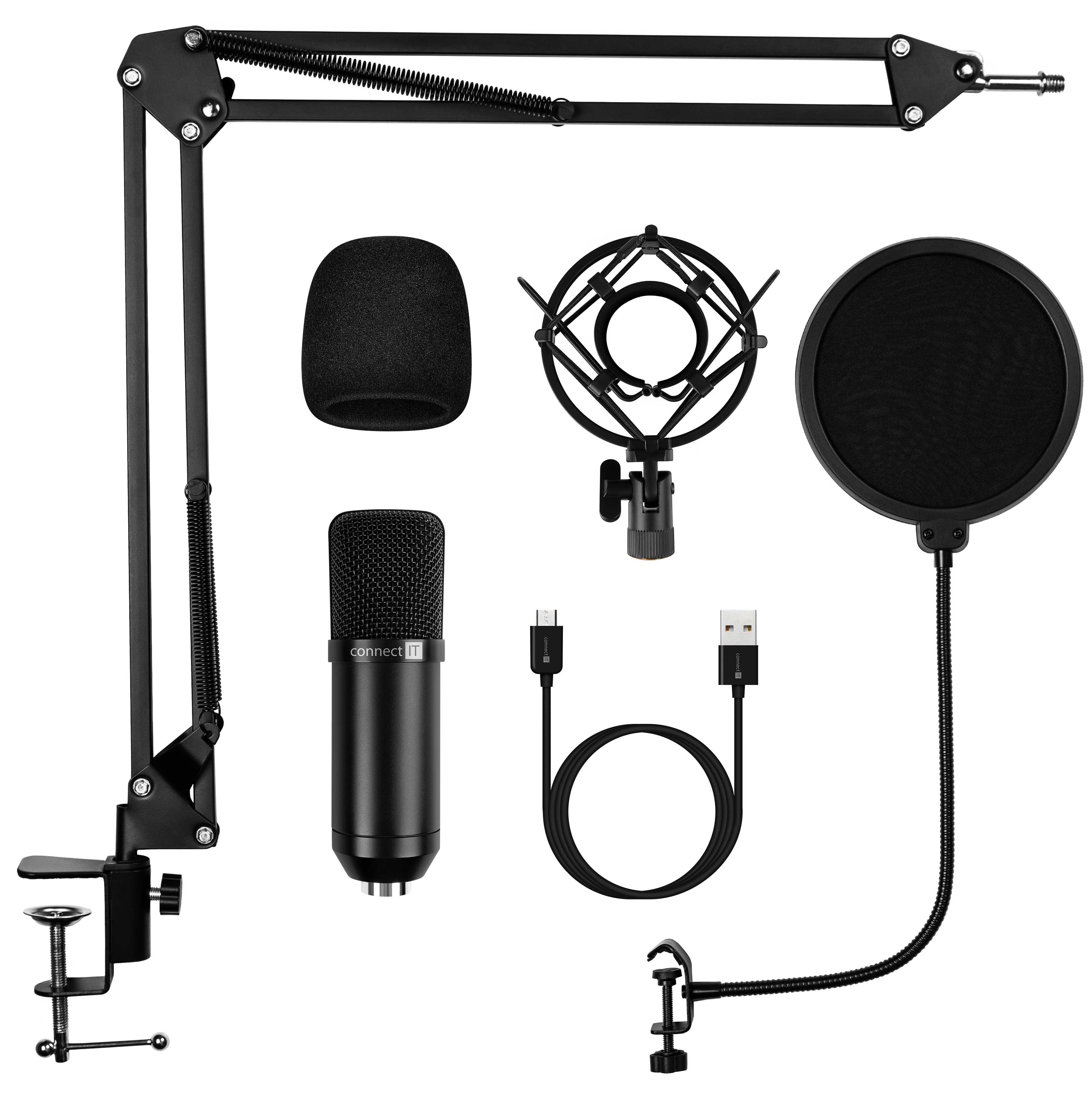 USB mikrofon se stolním ramenem a POP filtrem ideální pro záznam hlasu, zvuků a ruchů, hraní her, streamování, chatování (Messenger, Skype atp.), karaoke