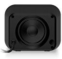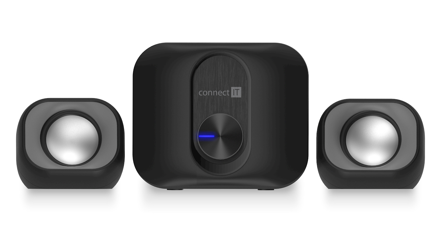 Reproduktory mají celkový výkon 11W a disponují podsvíceným ovladače hlasitosti na středním basovém reproduktoru.