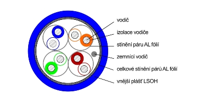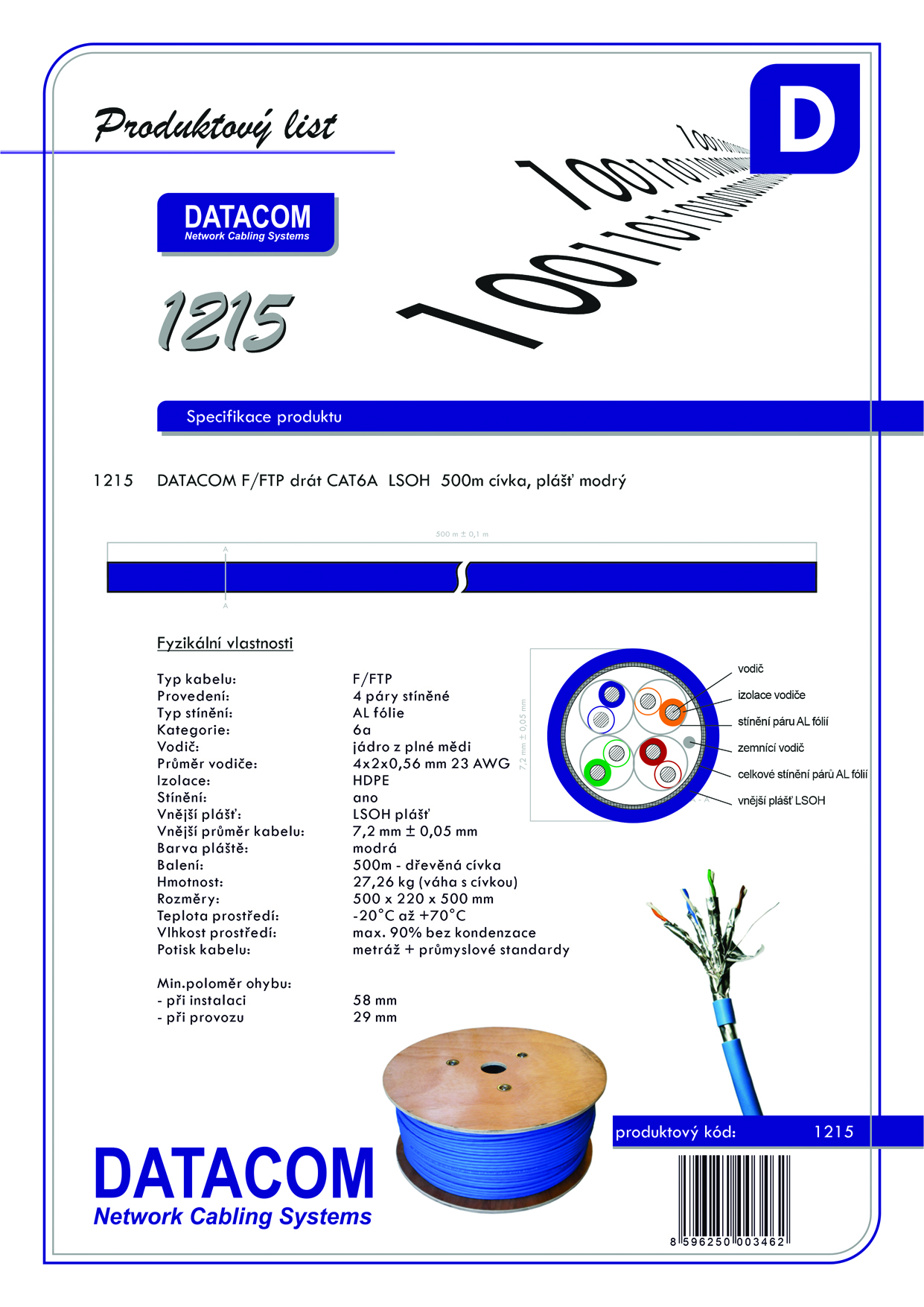 DATACOM F/FTP drát CAT6A Eca LSOH 500m cívka modrý