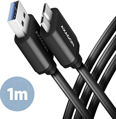 AXAGON BUMM3-AM10AB, SPEED kabel Micro-B USB <-> USB-A, 1m, USB 3.2 GEN 1, 3A, ALU, tpe, černý