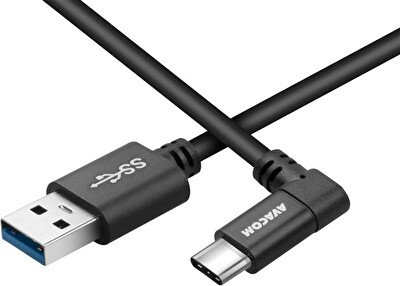 AVACOM datový a nabíjecí kabel USB - USB Type-C, 100cm, konektor v úhlu 90°, černý