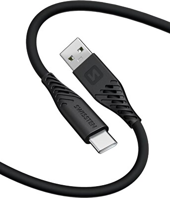 DATOVÝ KABEL SWISSTEN SOFT SILICONE USB / USB-C 1,5 M 60W ČERNÝ