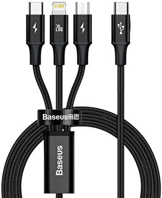 Baseus datový kabel USB-C Rapid Series 3v1 microUSB+Lightning+USB-C 1,5m PD 20W černý