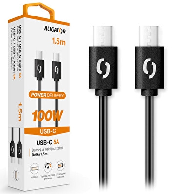 Datový kabel ALIGATOR POWER 100W, USB-C/USB-C 5A, 1,5m černý