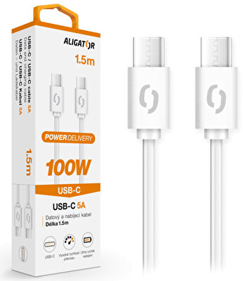 Datový kabel ALIGATOR POWER 100W, USB-C/USB-C 5A, 1,5m bílý