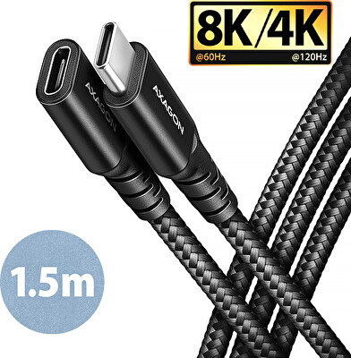 AXAGON BUCM32-CF15AB prodlužovací kabel USB-C (M) <-> USB-C (F), 1.5m, USB 20Gbps, PD 240W ALU oplet