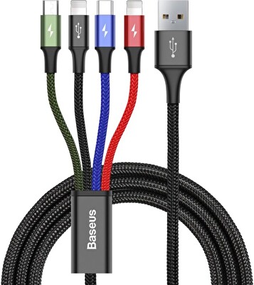 Baseus datový kabel 4v1 microUSB+USB-C+2xLightning 1,2m 3,5A černý