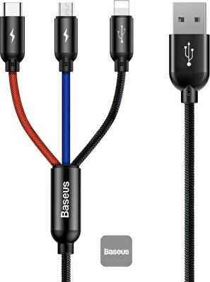 Baseus datový kabel 3v1 microUSB+Lightning+USB-C 1,2m 3,5A