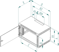 Nástěnný rack RUA 15U/600mm, plechové dveře, odním.bočnice