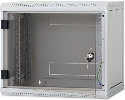 Rozvaděč nástěnný SENSA 9U 400mm, dveře sklo, RAL 7035, SENSA-9U-64-11-G
