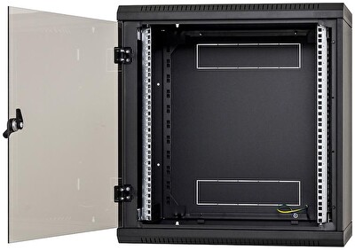 Nástěnný rack jednodílný 12U (š)600x(h)595 perforované dveře černý