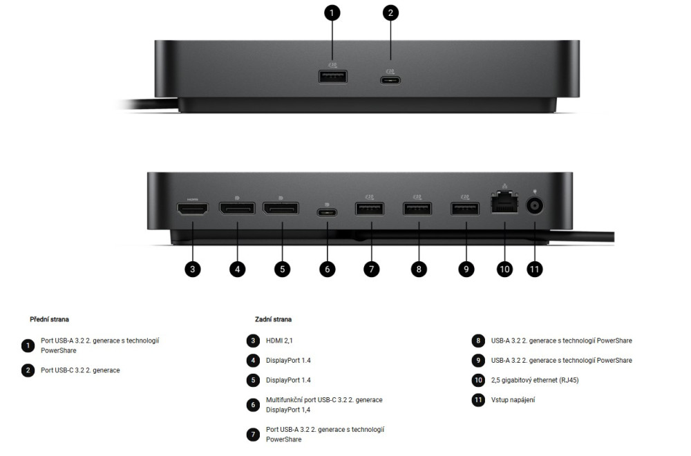 1× multifunkční rozhraní USB-C DisplayPort (7,5 W)