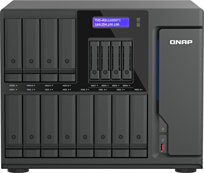 QNAP TVS-AIh1688ATX-U7-32G (Ultra 7, ZFS, 32GB DDR5 ECC RAM, 12x 3,5"+ 4x 2,5", 2x 2,5GbE, 2x 10GbE)