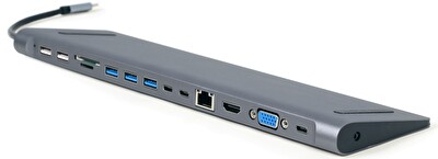 Gembird USB-C 9v1 multiport USB + HDMI + VGA + PD + čtečka karet + LAN + audio