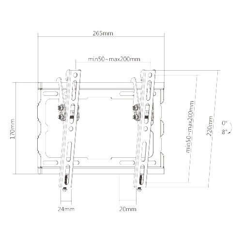 • Volně sklopitelná konstrukce pro jednoduchou změnu náklonu TV v úhlu 0°~-8°