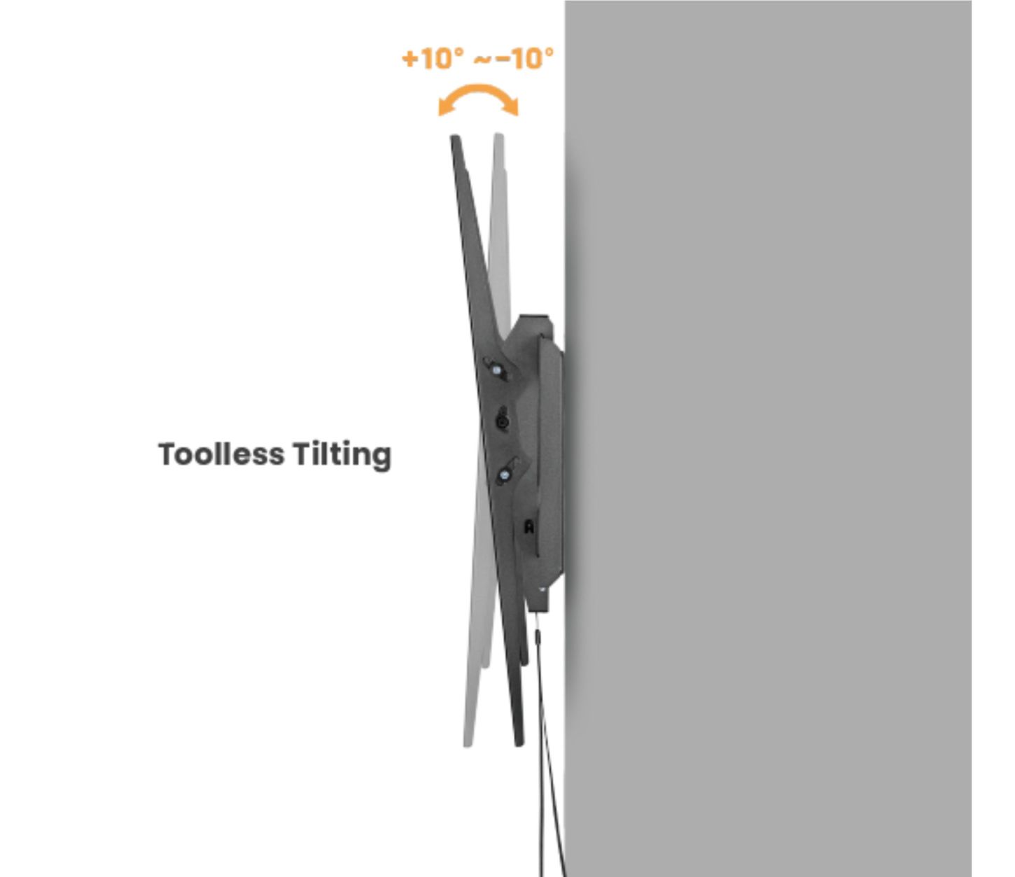 • Volně sklopitelná konstrukce pro jednoduchou změnu náklonu TV v úhlu +10°~-10°