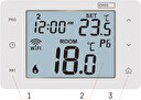typ ovládání programovatelný elektronický pokojový termostat, možnost ovládaní přes mobil (iOS, Android)