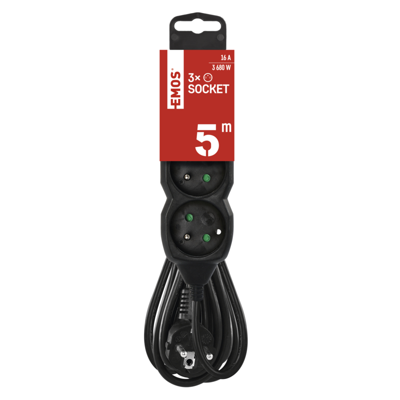 EMOS prodlužovací přívod 3z/5m, černý, 1,5mm