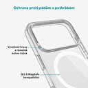 Průhledná zadní strana krytu s UV ochranou zabraňuje zežloutnutí a zachovává původní vzhled iPhonu. Ochranné sklo kryje displej od kraje ke kraji a s tloušťkou 0,33 mm v kombinaci s tvrdostí 9H ho spolehlivě chrání, aniž by snižovalo citlivost dotyku nebo ostrost obrazu. Speciální vrstva proti otiskům prstů zároveň udržuje povrch displeje čistý a bez šmouh. Štíhlé provedení krytu a hladké 2,5D hrany skla zaručují, že váš iPhone působí elegantně a příjemně padne do ruky. Pružný rámeček krytu a jednokrokový aplikátor skla usnadňují instalaci, takže vše zvládnete rychle a snadno.