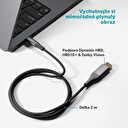 Díky šířce pásma 48 Gb/s přenáší obraz bez zpoždění či výpadků, zatímco formáty Dolby Atmos, DTS:X a eARC se postarají o ohromující prostorový zvuk v kinosálové kvalitě. Kabel je vyroben z prémiových materiálů – má hliníkové konektory a opletený povrch, který zaručuje dlouhou životnost i elegantní vzhled. Jeho délka 2 m poskytuje dostatek volnosti pro propojení zařízení a praktické poutko na suchý zip udrží kabel vždy úhledně smotaný pro snadné přenášení.