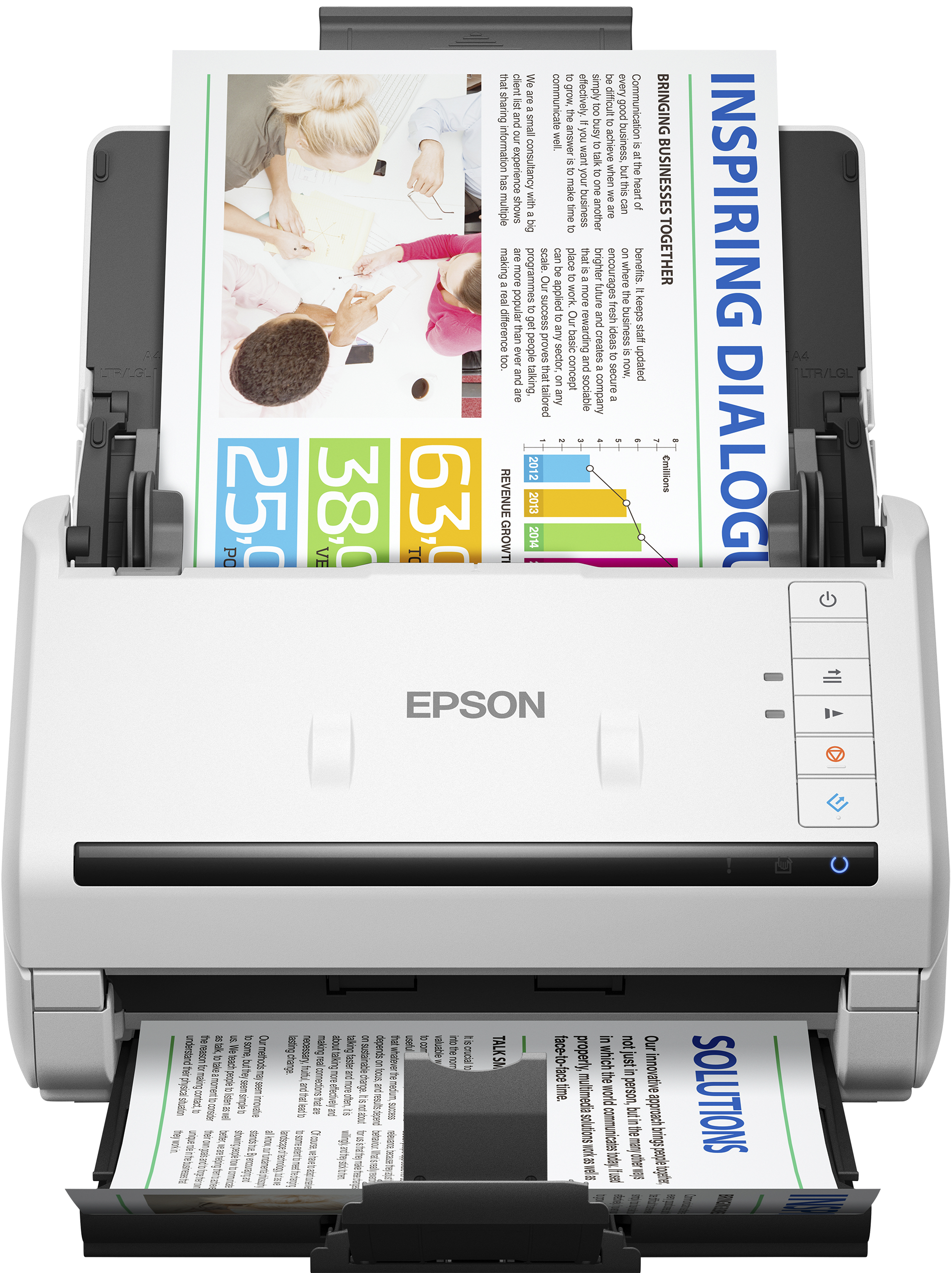 Inteligentní kompaktní skener s podavačem listů a inovativními chytrými funkcemi dokáže efektivně a rychle naskenovat velké množství dokumentů.