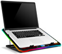 • Pro notebooky do 17“ • 3x 100 mm ventilátor • 3x 70 mm ventilátor • Regulace rychlosti otáček ventilátorů • RGB podsvícení ventilátorů a obvodu • Podsvícený digitální displej • Výškově polohovatelná (10 úhlů) • 2x USB vstup • Odnímatelný stojánek na telefon