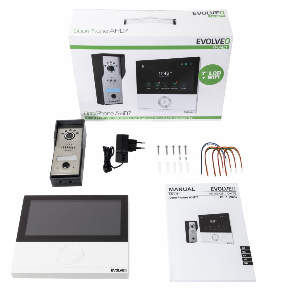 EVOLVEO DoorPhone AHD7, Sada domácího WiFi videotelefonu s ovládáním brány nebo dveří, bíly monitor