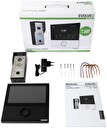 Balení obsahuje vše co je potřeba k jednoduché instalaci: vnitřní monitor, venkovní jednotku s kamerou, sadu šroubů a hmoždinek, svorky na kabely s páčkou.