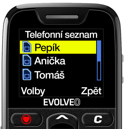 • Kontakty rychlé volby pro snadné vytáčení blízkých osob