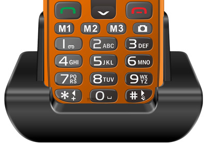 Telefon je dodáván s praktickým nabíjecím stojánkem, do kterého stačí telefon zasunout a nabíjení baterie se spustí automaticky, což usnadňuje a zpříjemňuje každodenní používání. Díky výdrži baterie až 8 dnů je telefon stále připraven k použití, aniž by uživatel musel často hledat zásuvku pro nabíjení