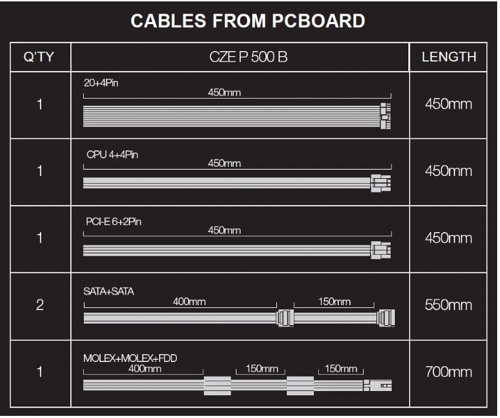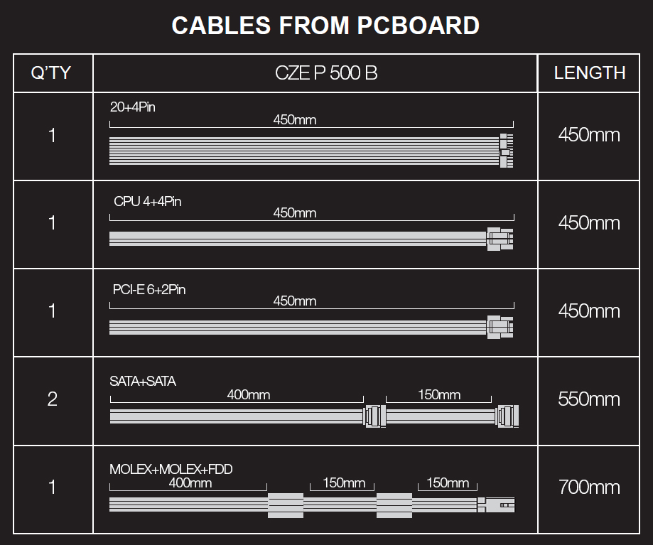• 1x napájecí kabel cpu 4pin (8pin - 4+4)
