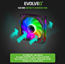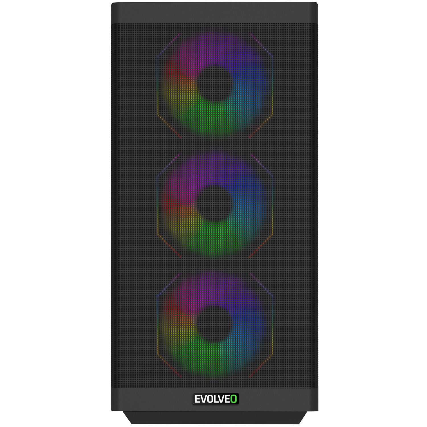 Tato PC skříň je sídlem nejen pro váš hardware, ale i pro čtveřici ventilátorů Infinity Mirror. Ty jsou strategicky rozmístěny a perfektně vyzbrojeny pro boj proti přehřívání počítače, ovšem jak je u EVOLVEO Scorpio-BK-4 dobrým zvykem, dbají i na eleganci. Zdobí je Multi ARGB podsvícení s 22 LED diodami (8 uprostřed a 14 na vnějším obvodu každého ventilátoru), doplněné o působivý zrcadlový design. Díky soustavě zrcadel se světlo odráží a znásobuje, až se vám zdá, že v PC skříni svíti stovky žároviček. Jde o opravdu úchvatný efekt, který dává herní atmosféře tu pravou šťávu.