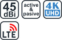 • Aktivní pokojová anténa • Pro příjem FM/DAB+/DVB-T2 • Zesilovač, zisk 45 dBi , filtr LTE, 4G, 5G • Napájecí adaptér, konektor IEC male