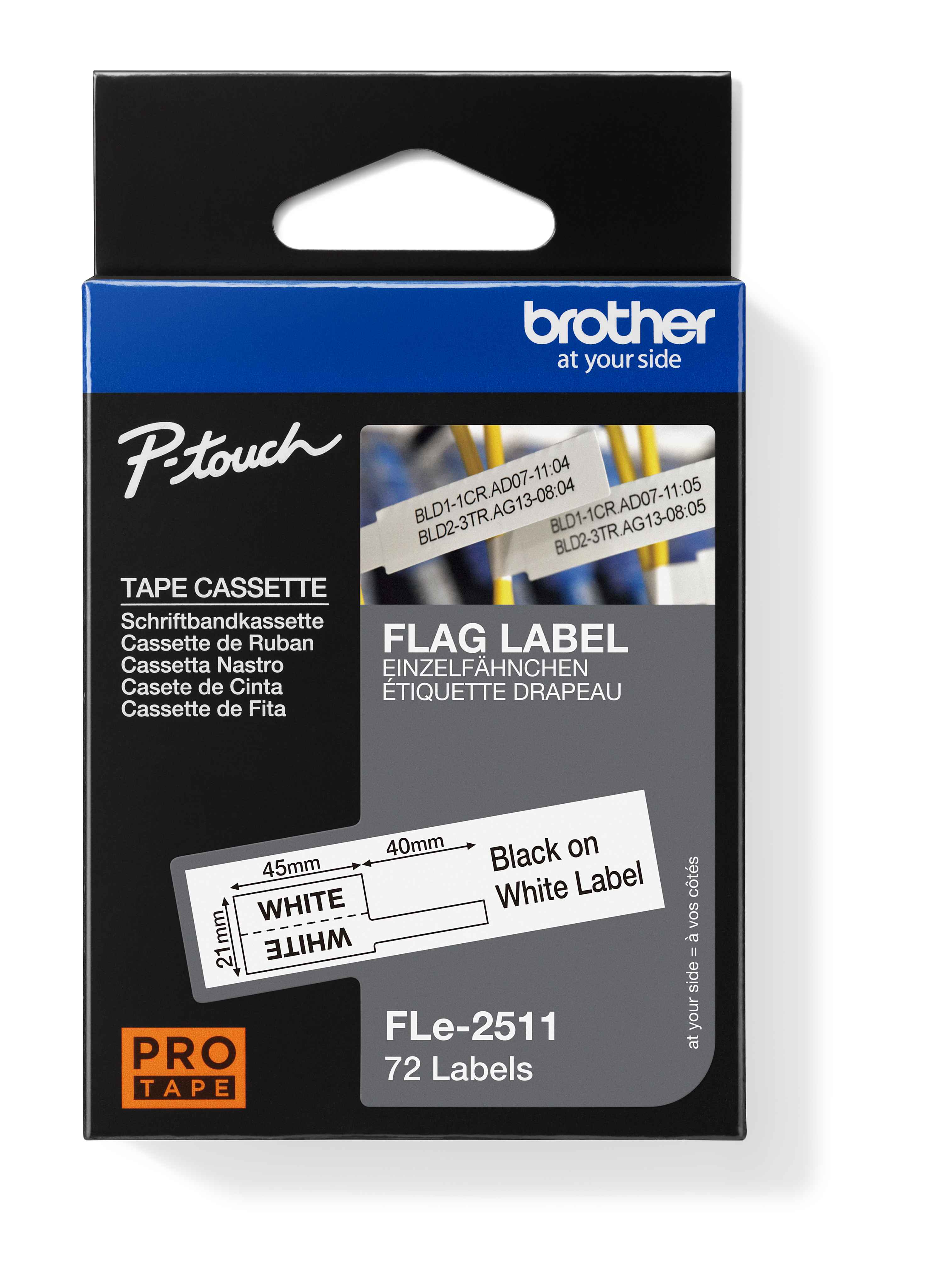 FLe-2511, předřezané štítky - černá na bílé, šířka 21 mm