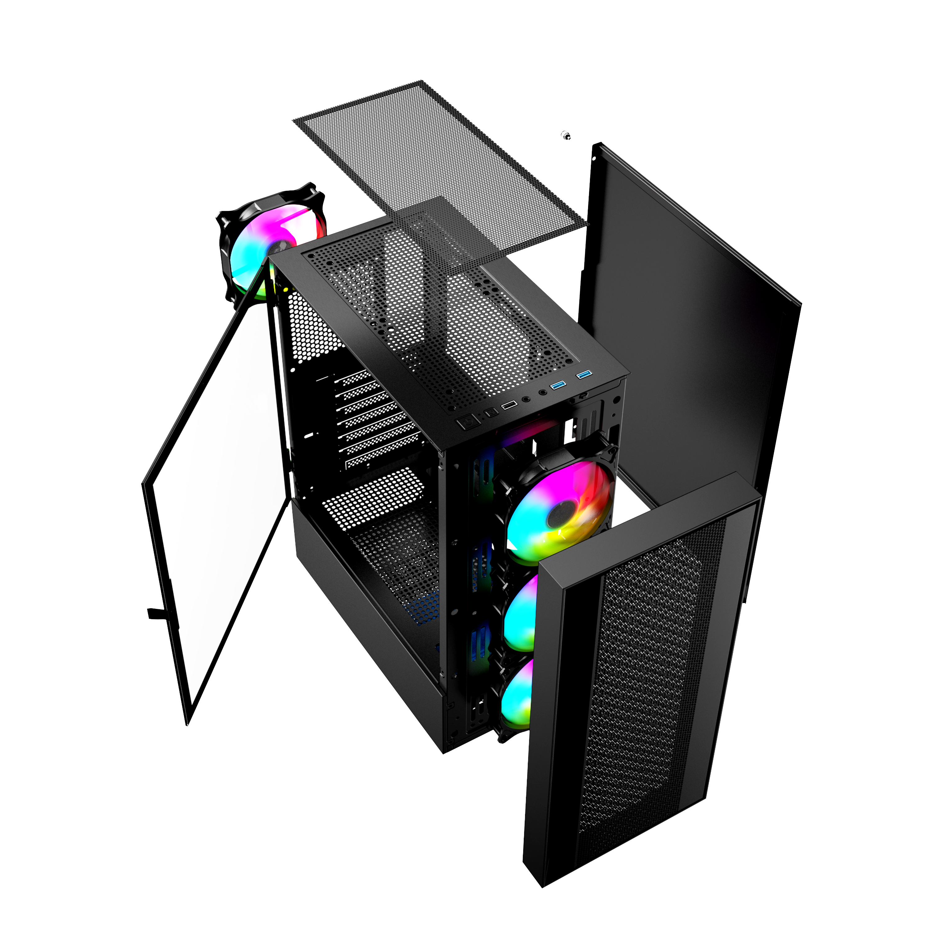 Gembird Fornax 4000 ARGB/Midi Tower/Transpar./Černá