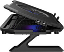Stojan je vybaven účinným a bezpečným chladicím systémem založeným na čtyřech malých ventilátorech, které odvádějí teplo zpod notebooku, a jednom hlavním ventilátoru, který přivádí studený vzduch do notebooku. Správné umístění ventilátorů zajišťuje mimořádně účinné chlazení a třístupňová regulace rychlosti jejich otáčení účinně sníží teplotu notebooku i během nejzuřivějších bitev.