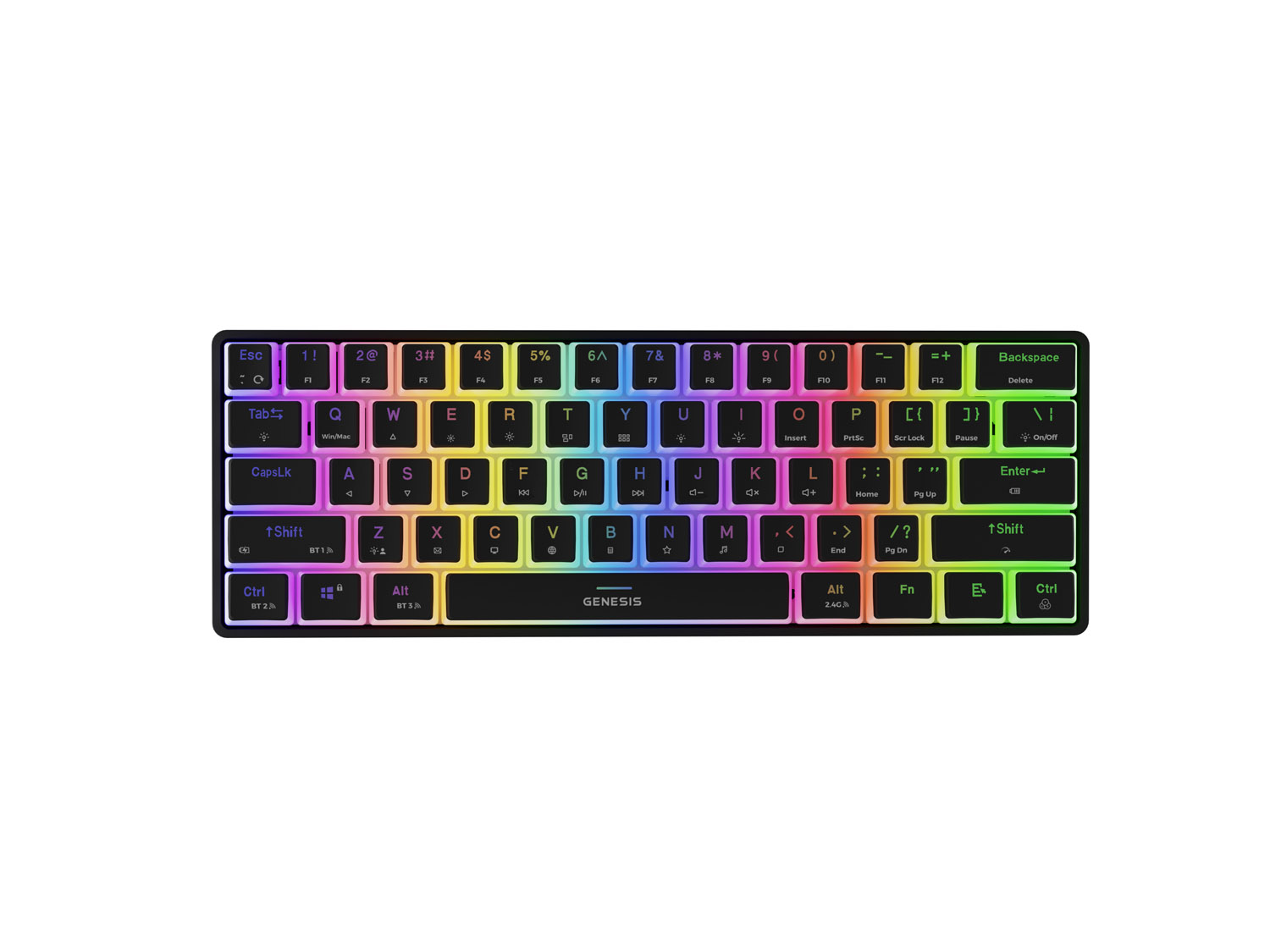 Přivítejte GENESIS Thor 660 G2. Kompaktní klávesnice, která vám poskytne vše, co potřebujete pro hraní i práci. Trojitý režim připojení (spolu s technologií RapidSpeed™ ), možnost připojení až 4 zařízení současně, více než 80 hodin hraní na jedno nabití a ještě plynulejší výkon díky předmazaným stabilizátorům - a to je jen začátek.