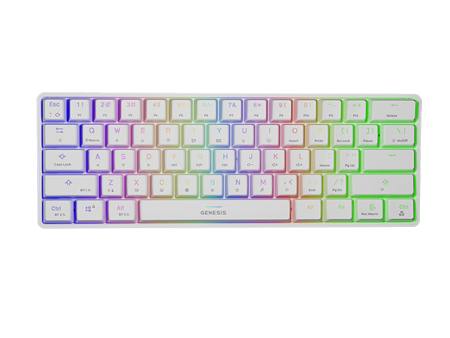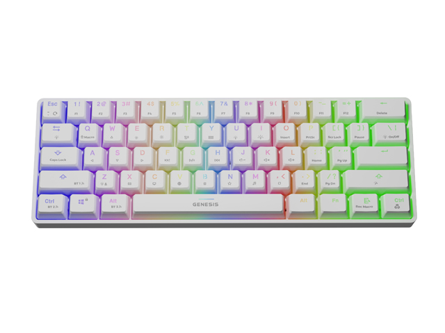 Genesis THOR 660 je bezdrátová mechanická klávesnice 60% velikosti, zkrácená o numerický blok, šipky a jednu řadu funkčních kláves. Ultra rychlá doba odezvy spínačů The Gateron Red přináší neuvěřitelný herní výkon a životnost až 50 milionů stisknutí, což je zárukou odolnosti na dlouhá léta. Působivé šasi v kombinaci s RGB podvícením a efektem PRISMO dodá každé herní stanici profesionální vzhled.