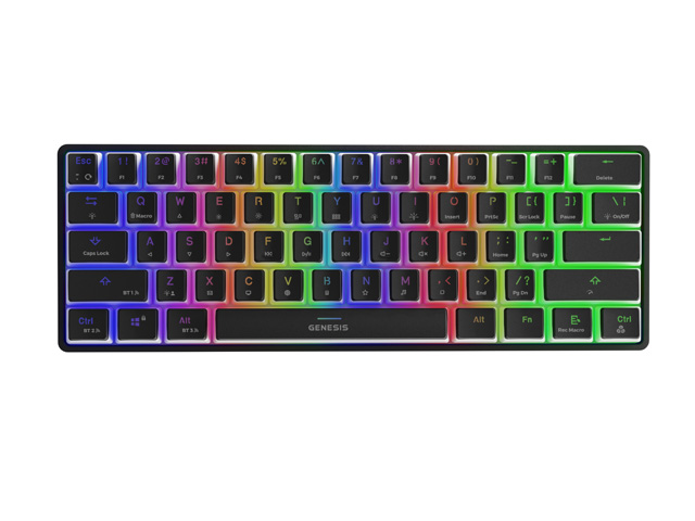 Genesis THOR 660 je bezdrátová mechanická klávesnice 60% velikosti, zkrácená o numerický blok, šipky a jednu řadu funkčních kláves. Ultra rychlá doba odezvy spínačů The Gateron Red přináší neuvěřitelný herní výkon a životnost až 50 milionů stisknutí, což je zárukou odolnosti na dlouhá léta. Působivé šasi v kombinaci s RGB podvícením a efektem PRISMO dodá každé herní stanici profesionální vzhled.