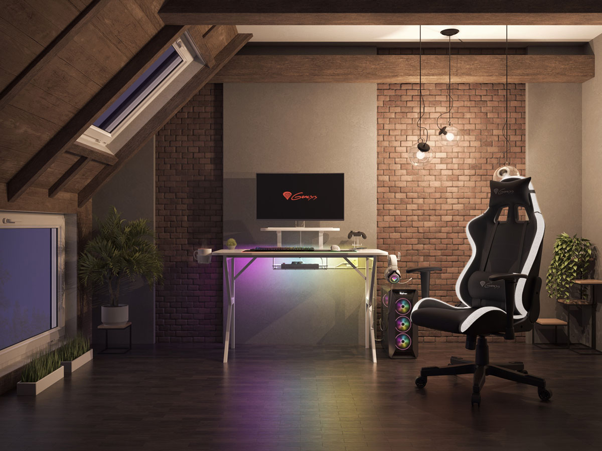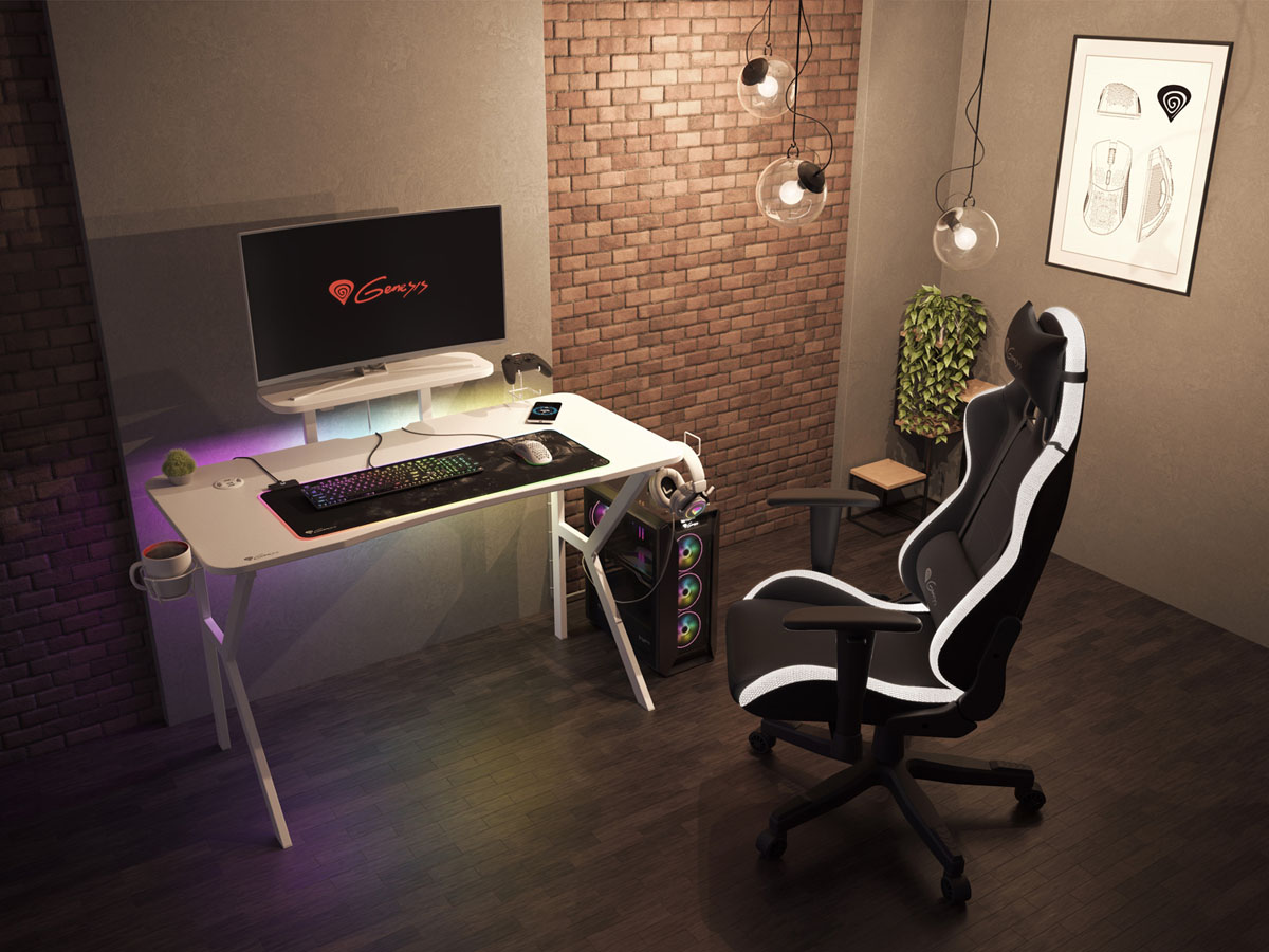 Genesis herní stůl Holm 320, RGB podsvícení, bílý, 120x60cm, 3xUSB 3.0, bezdrátová nabíječka