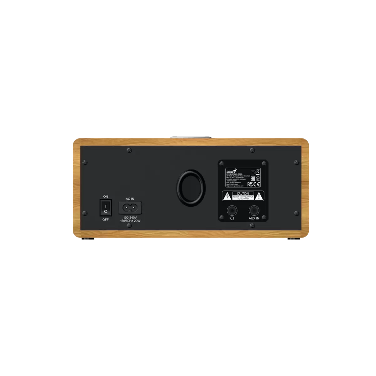 GENIUS SP-HF505BT - světlé dřevo *Jednodílné stereo Bluetooth dřevěné reproduktory pro poslech z mobilních telefonů, tabletů, PC nebo audio zařízení *Celkový výstupní výkon 20 wattů (RMS) *Dva 1,5" výškové reproduktory pro čisté výšky (jeden pro každý kanál) *Dva 3" basové reproduktory pro rozšířený střední a hluboký bas (jeden pro každý kanál) *Bezdrátová technologie Bluetooth 5.3 *Vstup AUX (Line in) pro připojení dalších audio zařízení *Sluchátkový výstup pro připojení sluchátek Specifikace: Verze Bluetooth -Bluetooth 5.3 Celkový výstupní výkon -20W RMS Reproduktorové jednotky -Basový reproduktor: 3" x 2, Výškový reproduktor: 1.5" x 2 Frekvenční odezva -80Hz ~ 20KHz Ovládání na předním panelu -Ovládání hlasitosti, sluchátkový výstup Napájení -100-240V~50/60Hz Hmotnost (gramy) -Přibližně 1326 g Rozměry (Š x V x H) mm (palce) -110 x 207 x 133.4 mm (4.33 x 8.15 x 5.25 palce) Systémové požadavky -Ideální pro mobilní telefon, tablet, PC, notebook nebo hudební zařízení s podporou Bluetooth
