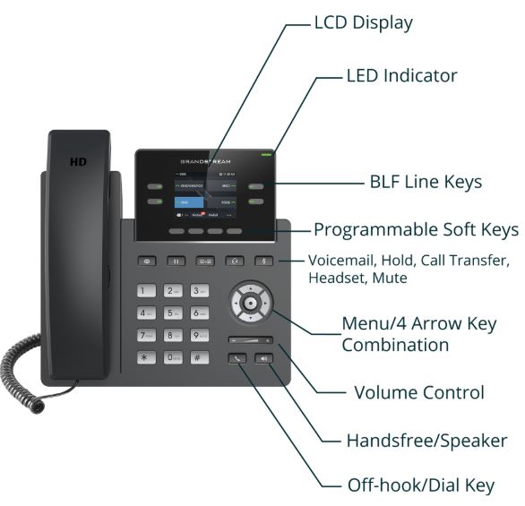 Grandstream GRP2612P, 2.4" TFT bar. displej, 2 SIP účty, 4 prog. tl., 16 BLF tl., PoE, 10/100Mbps