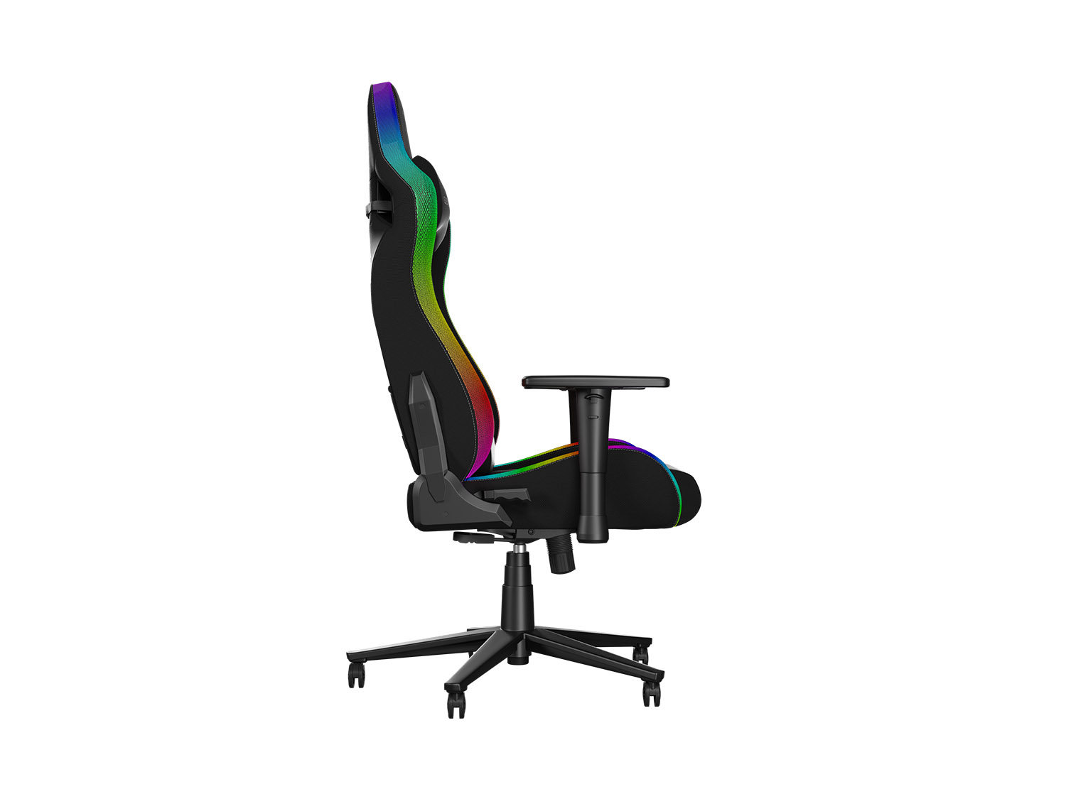 - Ergonomická herní židle s dálkově ovládaným RGB podsvícením s mnoha efekty a režimy umožňujícími nastavení rychlosti a jasu.