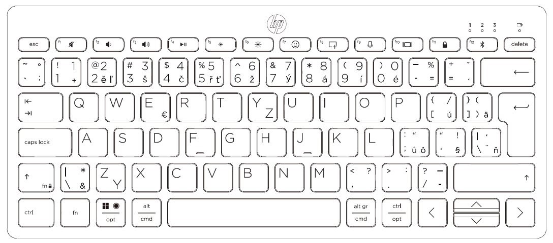 HP 350 Kompaktní klávesnice Bluetooth pro více zařízení (692S8AA) Nepíše se vám lépe na externí klávesnici? Tato bezdrátová klávesnice kombinuje produktivitu stolního počítače s kompaktní přenosností, ať jste kdekoli, díky funkcím, jako je Bluetooth 5.2, multipárování a klávesové zkratky. Vezměte si ji s sebou kamkoli, abyste si užili uspokojivý zážitek z psaní, který vám zůstane. Kompatibilita: Kompatibilní s počítači s připojením Bluetooth Barva: černá Hmotnost: 0,34 kg Rozměry: 282.1 x 121.8 x 16 mm Obsah balení: *Bezdrátová klávesnice; *2 x baterie AAA; *Stručný návod k použití; *Záruční list; *R.E.D. karta (pouze EMEA) Záruka: 1 rok pro IČ a 2 roky spotřebitel