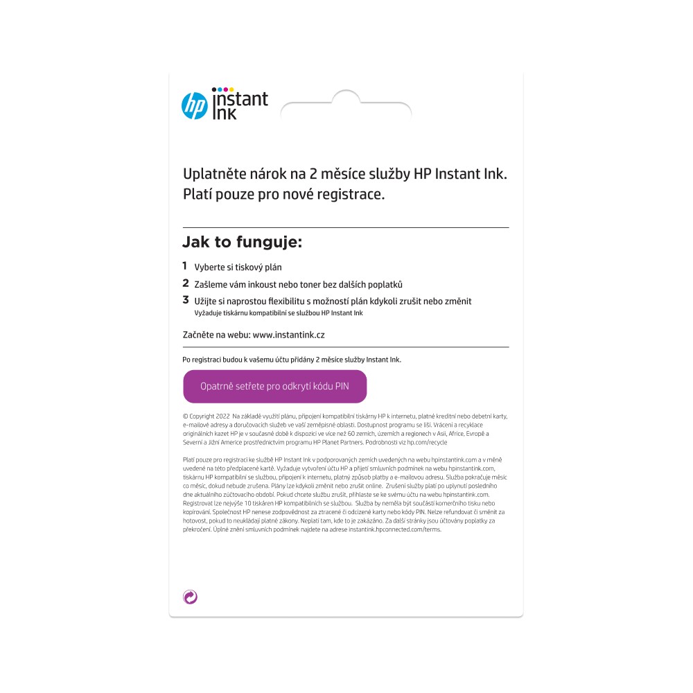 HP cards - Předplatné ke službě HP Instant Ink ALL