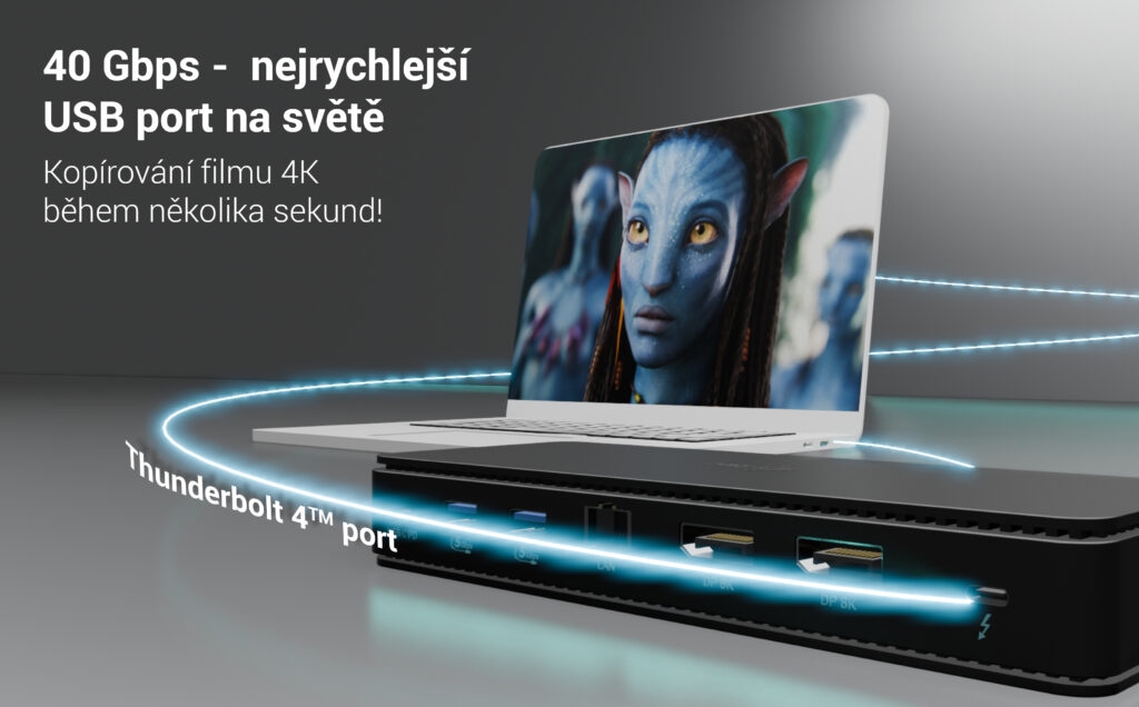• Kompatibilní s notebooky a tablety s rozhraním Thunderbolt™ 3/4, USB4 a USB-C. (Hostitelské zařízení musí podporovat režim DisplayPort Alt). • Porty DisplayPort nebo Thunderbolt™ 4 podporují zobrazení až 8K/30 Hz (jedna obrazovka) nebo 2x 4K / 60 Hz (režim dvou obrazovek). • Produktové balení obsahuje 1x 100cm certifikovaný Thunderbolt 4 kabel • Port Thunderbolt™ 4 poskytuje rychlost přenosu dat až 40 Gb/s nebo video výstup. • 6x USB portů umožňuje snadné připojení více USB zařízení a periferií. • Poskytuje až 92W Power Delivery pro kompatibilní notebooky a tablety s rozhraním USB4, USB-C a Thunderbolt. Hostitelské zařízení musí podporovat USB-C Power Delivery. • 2,5GLAN Ethernet podporuje síťové rychlosti 10/100/1000/2500 Mb/s, což poskytuje robustní a superrychlé připojení k internetu. • Sloty SD/TF umožňují snadné připojení paměťových karet. • Kombinovaný 3,5mm audio vstup/výstup pro snadné připojení náhlavní soupravy nebo reproduktorů. Výjimečný výkon, ultrarychlý přenos dat a podpora rozlišení až 8K. Jedna z nejvýkonnějších dokovacích stanic na trhu! Křišťálově čistý obraz, superrychlý internet a možnost přenášet data rychlostí až 4 GB za sekundu díky integrovanému výstupnímu portu Thunderbolt 4. Můžete také samozřejmě připojit sluchátka nebo audio a nabíjet notebook (92 W), a to vše pomocí jediného kabelu (100 cm certifikovaný Thunderbolt 4 kabel je součástí balení). Díky integrovanému protokolu DP 1.4 můžete tuto dokovací stanici připojit k monitoru s rozlišením až 8K (7680 x 4320) s obnovovací frekvencí 30 Hz, což odpovídá rozlišení čtyř monitorů, každého v rozlišení 4K. To z něj činí ideální řešení pro grafiky, analytiky, vývojáře, filmové střihače nebo nadšence a milovníky videa ve vysokém rozlišení. Dokovací stanice je nyní kompatibilní nejen s porty Thunderbolt 4, ale také s USB-C*, což z ní činí flexibilní řešení pro firmy a uživatele, kteří používají notebooky a tablety s různými porty. * Při připojení k USB-C je podporován pouze jeden monitor (4K/60 Hz). Specifikace • 1x port Thunderbolt 4 pro připojení k notebooku • 1x port Thunderbolt 4: přenos videa nebo dat 40 Gb/s • 1x certifikovaný Thunderbolt 4 kabel (100 cm) Grafická rozhraní a podporovaná rozlišení: • 1x Thunderbolt 4 nebo 1x DisplayPort max. rozlišení 7680×4320/30Hz • Duální (Thunderbolt 4 + DisplayPort nebo 2x DisplayPort): max. rozlišení 3840×2160/60Hz Podporované režimy: 1: Rozšíření, Zrcadlení a Primární displej • 1x USB-C 3.2 Gen2 (10 Gb/s), podpora BC 1.2 (rychlé nabíjení) • 2x USB-A 3.2 Gen2 (10 Gb/s), podpora BC 1.2 (rychlé nabíjení) • 2x USB-A 3.2 Gen1 (5 Gb/s) s podporou nabíjení. • 1x USB-A 2.0 (480 Mb/s) • 1x port Ethernet 2.5 GLAN RJ-45, 10/100/1000/2500 • 1x čtečka karet SD (specifikace SD 3.0) • 1x čtečka karet TF (microSD) (specifikace SD 3.0) • 1x 3,5 mm kombinovaný audio/mikrofonní konektor (přehrávání podporuje vzorkovací frekvenci 24bit192K) • 1x vstup USB-C Power Delivery (28 V/5 A, 140 W) • Rozměry výrobku : 197 x 79 x 30 mm • Hmotnost výrobku: 286 g Hardwarové požadavky: • Zařízení s volným portem USB-C*, USB4* nebo Thunderbolt™ 3/4 Požadavky na napájení Power Delivery: • Zařízení s volným portem USB-C, USB4 nebo Thunderbolt™ 3/4 s podporou Power Delivery Požadavky na výstup videa: Výstupní kabel: • Zařízení s volným portem USB-C* nebo USB4* s podporou alternativního režimu DisplayPort nebo portem Thunderbolt™ 3/4 Operační systém: • Windows 10 / 11, macOS a Linux s nejnovějšími aktualizacemi * Při připojení k USB-C nebo USB4 je podporován pouze jeden monitor (8K/30 Hz). Obsah balení: • Dokovací stanice Thunderbolt 4 • Kabel Thunderbolt 4 100 cm • Nabíječka USB-C (28 V/5 A, 140 W) s odpojitelným kabelem • Rychlý start