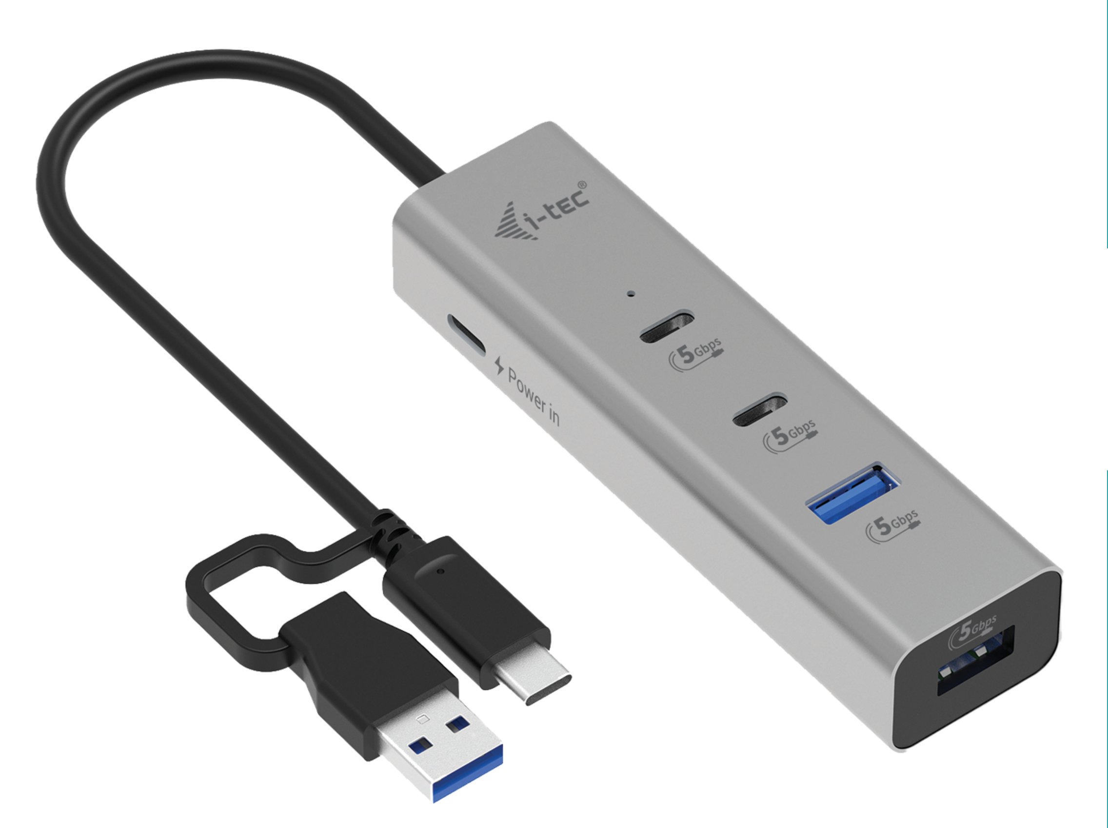 Rozbočovač nevyžaduje instalaci ovladačů, stačí jej připojit kabelem USB-C nebo USB-A a můžete jej začít ihned používat. Rozbočovač má vestavěnou přepěťovou ochranu počítače pro případ zkratu na periferiích. Díky kompaktním rozměrům a nízké hmotnosti jej můžete vždy nosit v tašce – kovový povrch chrání rozbočovač před poškozením a poškrábáním.