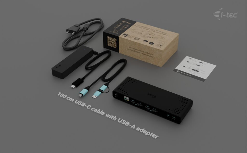 i-tec Universal Dual 4K Display Docking Station, Power Delivery 85W + i-tec USB-C Charger 100W