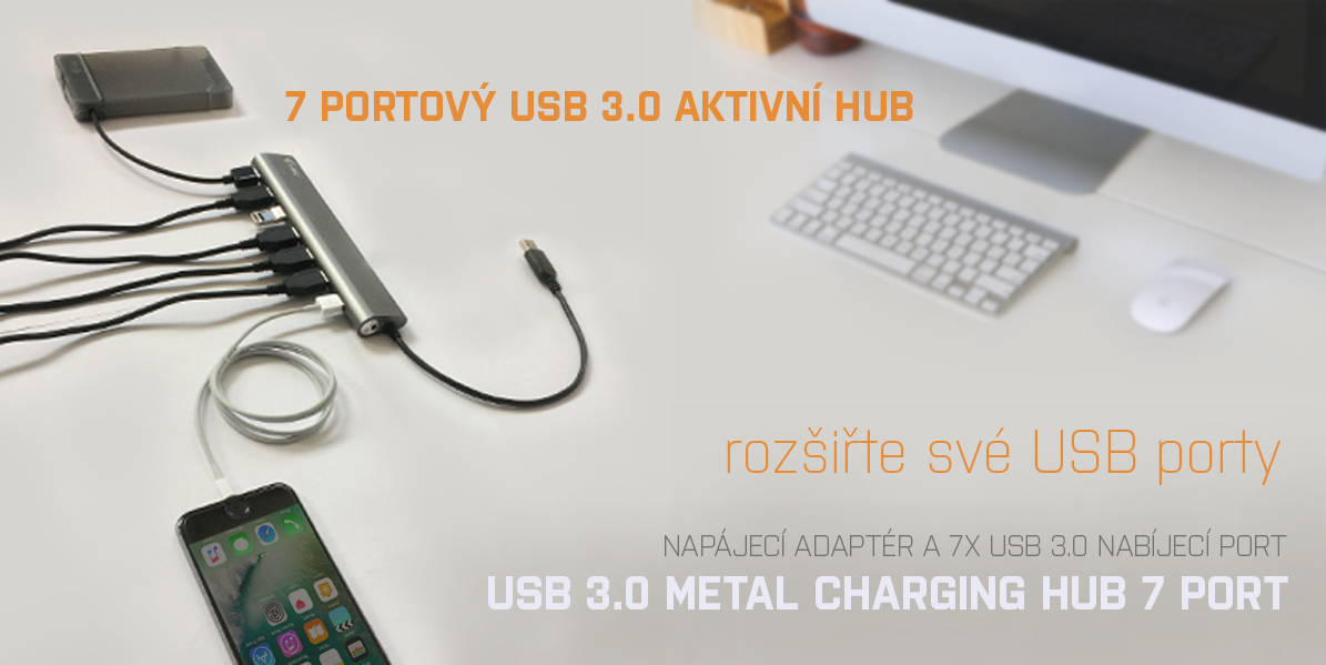 Tento HUB nabízí 7 USB 3.0 portů s funkcí Plug & Play a standardním USB nabíjením – HUB automaticky detekuje, jestli je připojeno zařízení pro USB nabíjení. Rozhraní USB 3.0 je důležité zejména pro datové přenosy z USB 3.0 paměťových karet a flash disků, kde se nejvíce využije jeho vysoká přenosová rychlost.